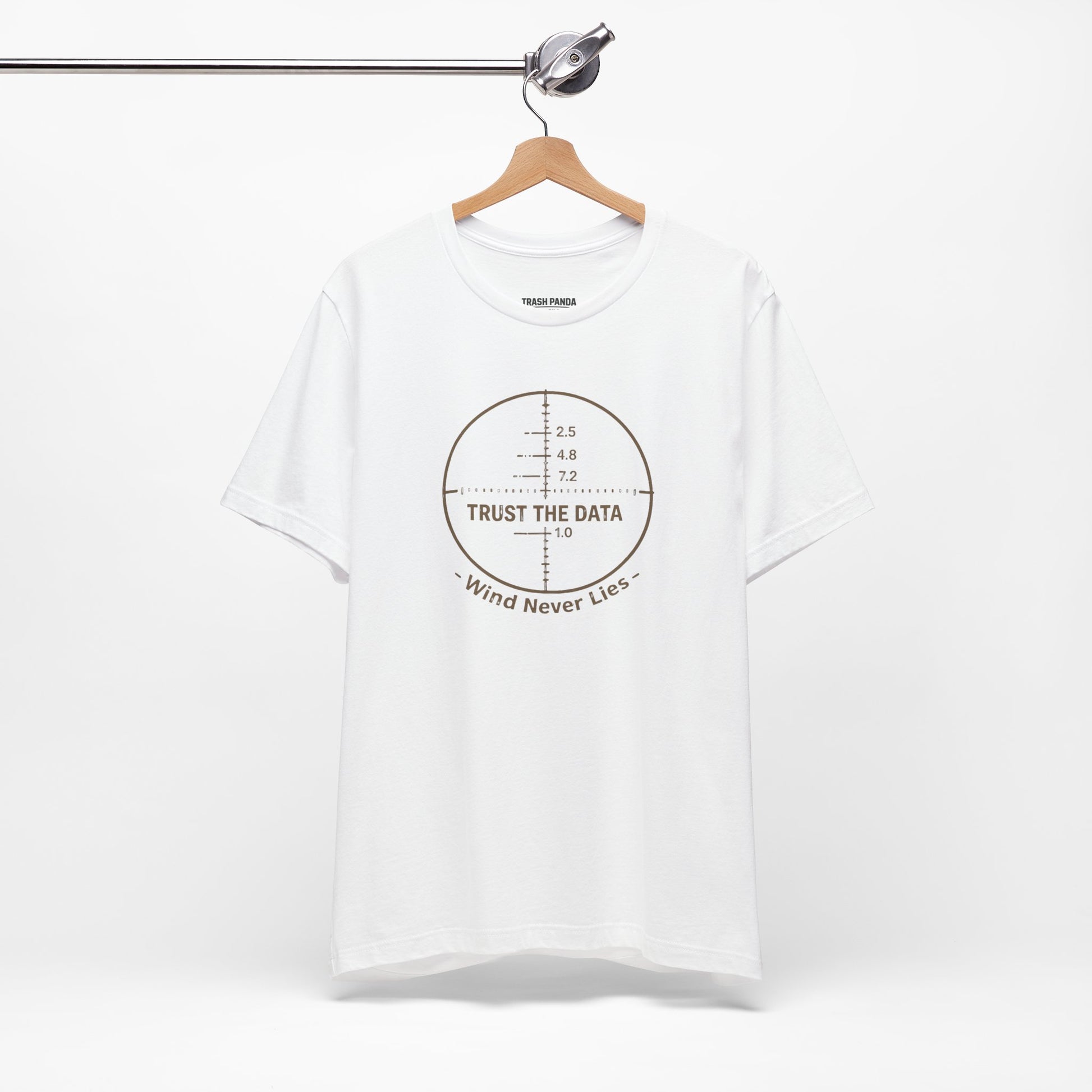 This design speaks to the mindset of those who understand that feelings don’t move rounds — data does. Featuring a clean reticle layout and the mantra “Trust the Data – Wind Never Lies,” this shirt represents calculated decisions, patience under pressure, and confidence earned through repetition.